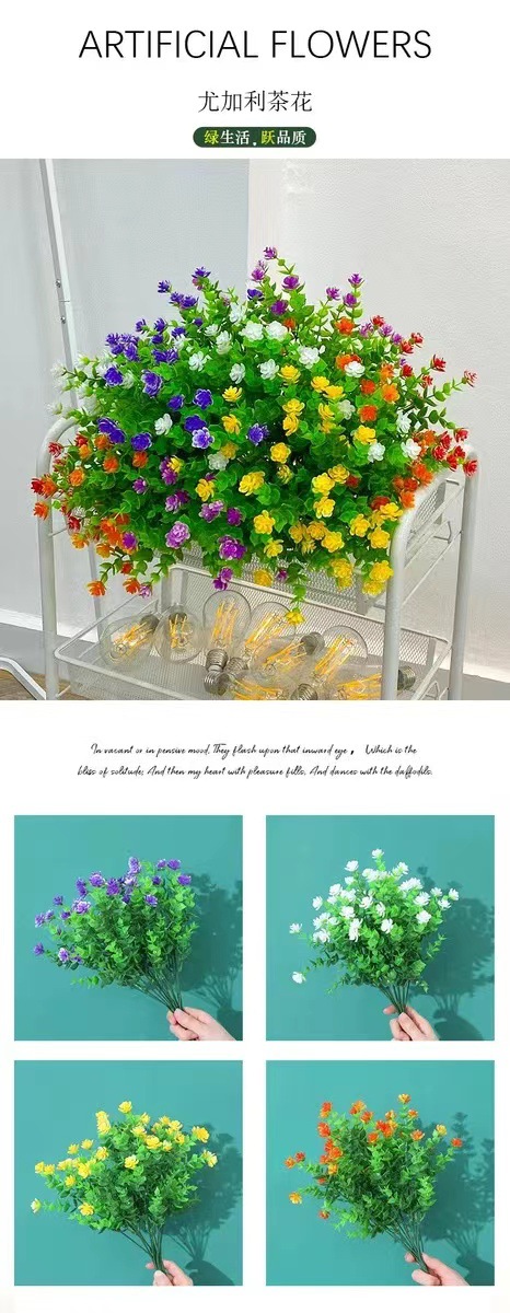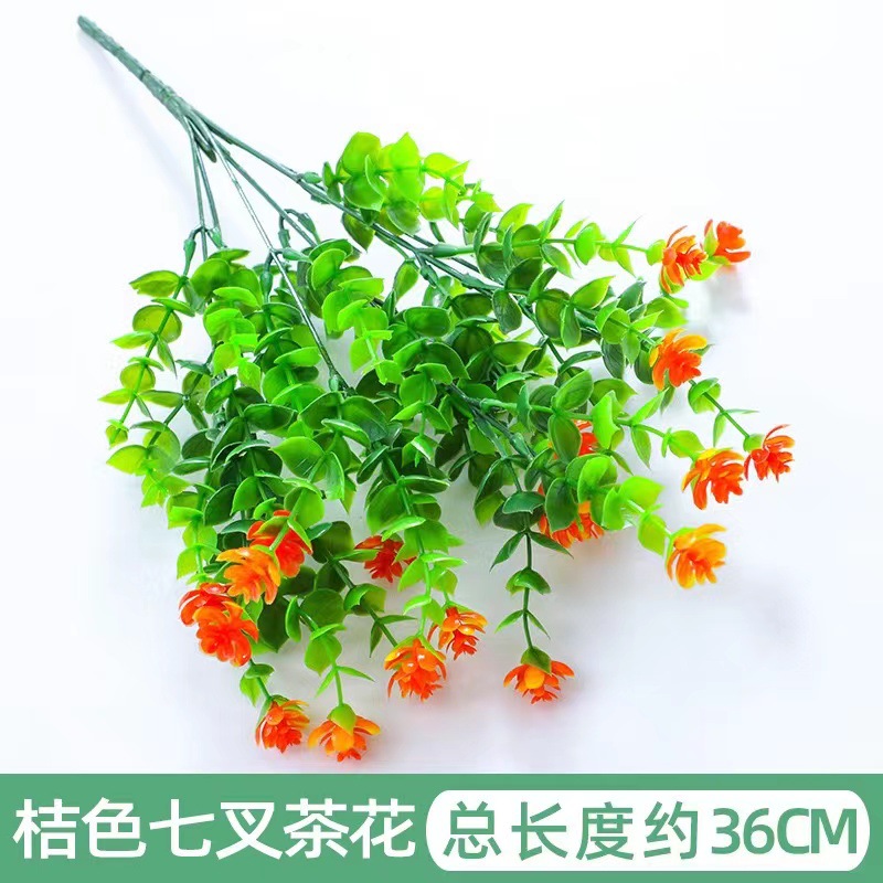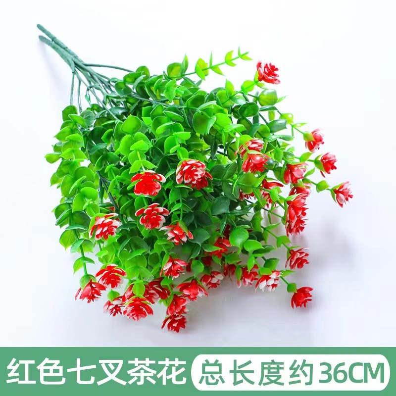Flor artificial transfronteriza eucalipto camelia artificial rosa verde planta ramo plástico flor planta decoración de la pared